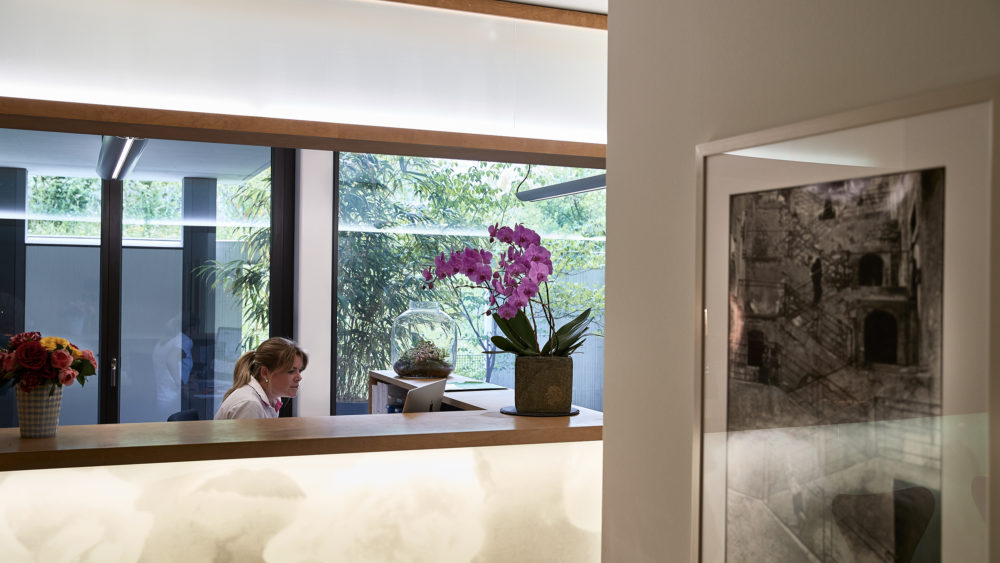 Das ist unsere Praxis in Zürich. Eine einladende, moderne Architektur mit hellen und grossen Räumen.